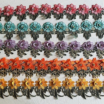 3D ملٹی کلر بیڈڈ فلاور گائی پور ایمبرائیڈری لیس ٹرم