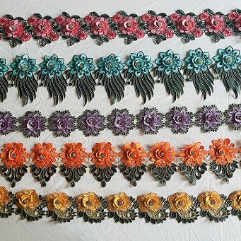 3D ملٹی کلر موتیوں والے پھولوں کی گائیپور ایمبرائیڈری لیس ٹرم مختلف رنگوں اور چوڑائیوں میں آتی ہے، جس سے ڈیزائن کے مختلف امکانات ہوتے ہیں۔ یہ اکثر ہیم لائنز، نیک لائنز، اور لباس کی آستین پر سجاوٹی لہجے کے طور پر یا کلچ بیگ یا ہیڈ بینڈ پر آرائشی عنصر کے طور پر استعمال ہوتا ہے۔