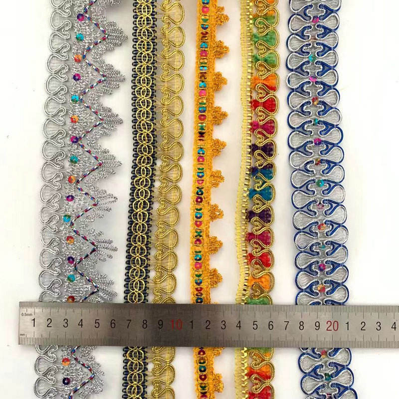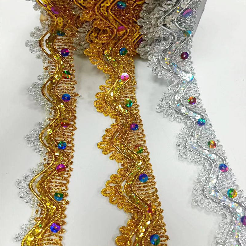 لباس کے لوازمات سونا اور چاندی کے دھاتی بارڈر لیس ٹرم ملٹی کلر سیکنڈ گولڈ تھریڈ میٹیلک لیس ٹرم
