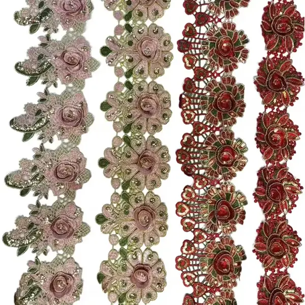 | Commodity | Fashionable High-quality Short Three-dimensional Floral Sequin Lace Suitable for Dresses and Other Accessories | |||