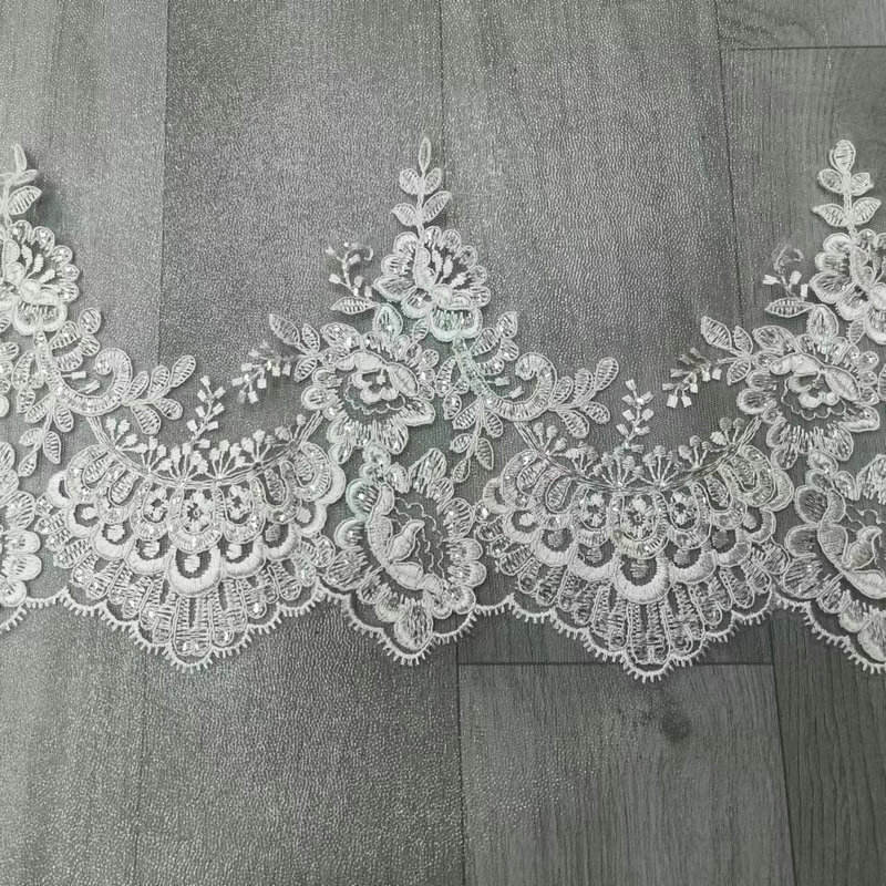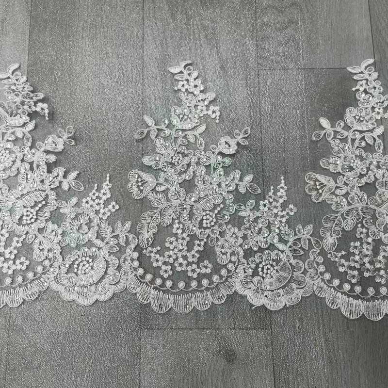 عیش و آرام کی سفید دلہن فرانسیسی لیس کڑھائی دلہن لیس ٹرم شادی کے لباس کے لئے
