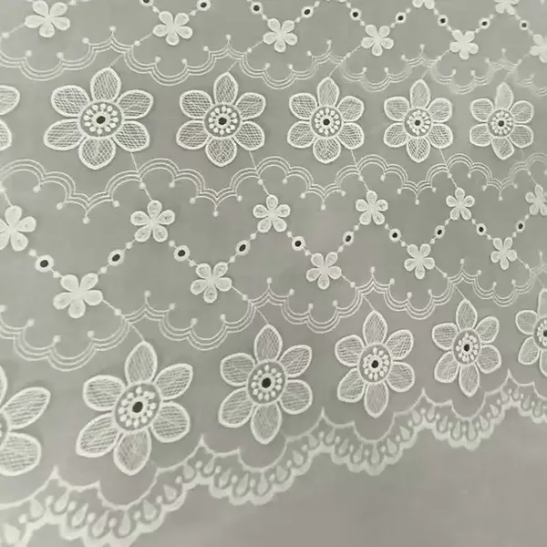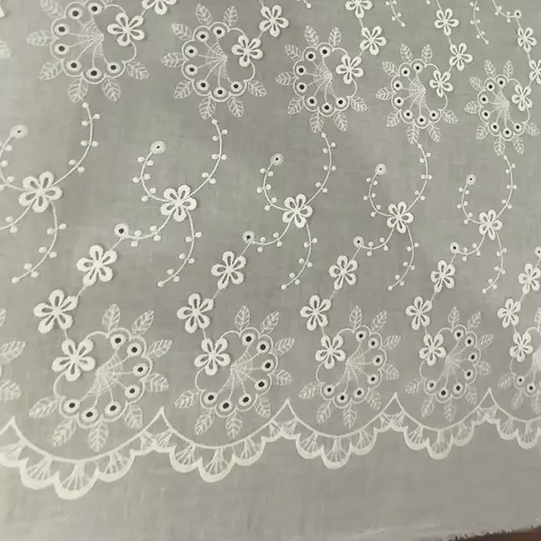 لباس کے ل white سفید روئی کے لیس کڑھائی کا کڑھائی کے تانے بانے اس خوبصورت لیس تانے بانے میں نازک کڑھائی اور آئیلیٹ کٹ ورک کی خصوصیات ہیں ، جس سے کپڑے ، بلاؤز اور دلہن کے لباس کے ل perfect بہترین سانس لینے والا ، ہلکا پھلکا مواد تیار ہوتا ہے۔ پیچیدہ پھولوں کے نمونے اور اسکیلپڈ ایجز ایک رومانٹک ، ونٹیج دلکشی کا اضافہ کرتے ہیں ، جبکہ قدرتی روئی نرمی اور راحت کو یقینی بناتی ہے۔