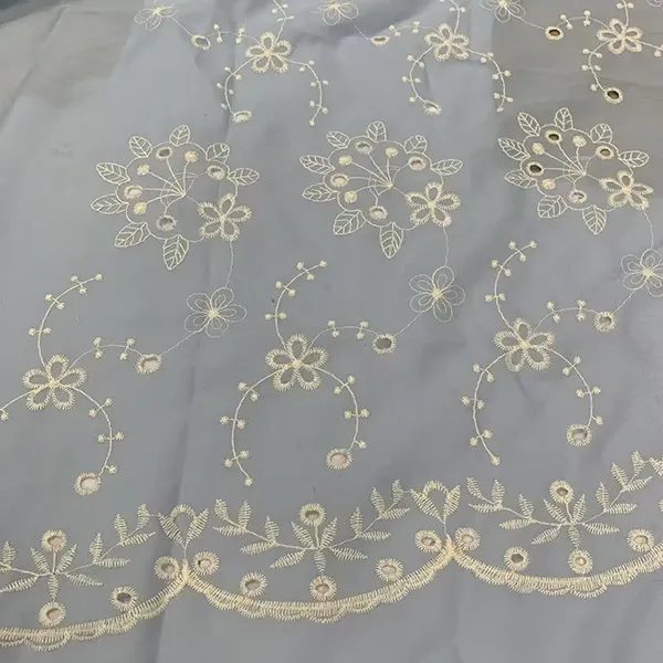 | مصنوعات کا نام | کسٹم نے نیا ڈیزائن کپاس کڑھائی کا آئیلیٹ تانے بانے بنایا ہے | ||